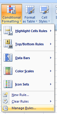 - In tab-ul Home, selectati Conditinal formatting - Manage rules;